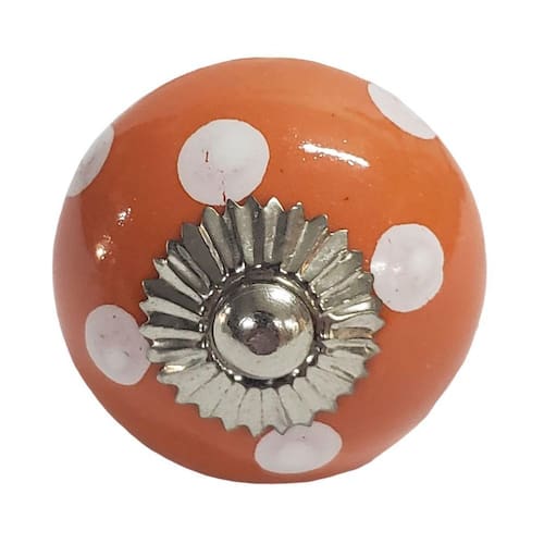 Puxador Cerâmica Indiano Modelo 16 Puxador Cerâmica Indiano Modelo 16 Puxador de Cerâmica artesanal, pintado à mão. Perfeito para renovar ambientes e trazer um toque de alegria e um ar vintage para o seu lar. O produto pode ser utilizado em quartos, banheiros, cozinhas e ambientes que precisem de um toque de delicadeza e utilidade para decorar armários e cômodas. Material: cerâmica Cor: Laranja Peso: aproximadamente 70g Largura: 4.5cm Altura: 4.5cm Origem: índia O produto é artesanal, fabricado e da Índia e por isso torna-se quase único apresentando pequenas variações. Os produtos podem apresentar pequenas variações de cor, tonalidade e brilho: produto artesanal. Podem ter pequenas variações em seu tamanho: produto artesanal. Podem ter pequenas variações em seu peso: produto artesanal. Marca: Balisun