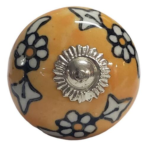 Puxador Cerâmica Indiano Modelo 57 Puxador Cerâmica Indiano Modelo 57 Puxador de Cerâmica artesanal, pintado à mão. Perfeito para renovar ambientes e trazer um toque de alegria e um ar vintage para o seu lar. O produto pode ser utilizado em quartos, banheiros, cozinhas e ambientes que precisem de um toque de delicadeza e utilidade para decorar armários e cômodas. Material: cerâmica Cor: Amarelo Peso: aproximadamente 70g Largura: 4.5cm Altura: 4.5cm Origem: índia O produto é artesanal, fabricado e da Índia e por isso torna-se quase único apresentando pequenas variações. Os produtos podem apresentar pequenas variações de cor, tonalidade e brilho: produto artesanal. Podem ter pequenas variações em seu tamanho: produto artesanal. Podem ter pequenas variações em seu peso: produto artesanal. Marca: Balisun Ean: 7907951980807
