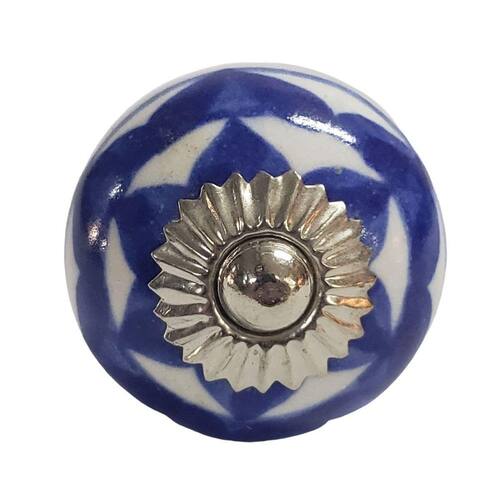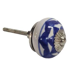 Puxador Cerâmica Indiano Modelo 7 Puxador Cerâmica Indiano Modelo 7 Puxador de Cerâmica artesanal, pintado à mão. Perfeito para renovar ambientes e trazer um toque de alegria e um ar vintage para o seu lar. O produto pode ser utilizado em quartos, banheiros, cozinhas e ambientes que precisem de um toque de delicadeza e utilidade para decorar armários e cômodas. Material: cerâmica Cor: branco e Azul Royal Peso: aproximadamente 70g Largura: 4.5cm Altura: 4.5cm Origem: índia O produto é artesanal, fabricado e da Índia e por isso torna-se quase único apresentando pequenas variações. Os produtos podem apresentar pequenas variações de cor, tonalidade e brilho: produto artesanal. Podem ter pequenas variações em seu tamanho: produto artesanal. Podem ter pequenas variações em seu peso: produto artesanal.