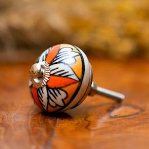 Puxador de Cerâmica Laranja, Branco & Preto Importado da India Puxador de Cerâmica Laranja, Branco & Preto Importado da India