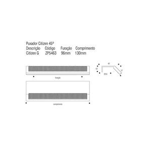 Puxador Citizen 45 Graus Gold Escovado - Zen Design G Puxador Citizen 45 Graus Gold Escovado - Zen Design G - O puxador da Zen Design, traz para o seu projeto a leveza e design que ele precisa.A Zen entra no mercado com sua linha de puxadores que se preocupam por unir qualidade a inovação.Com o compromisso de valorizar a estética dos ambientes, a empresa disponibiliza modelos totalmente diferenciados e personalizados com relação ao que há no mercado.Marca: ZEN DESIGNLinha: Citizen Tipo: EmbutirCitizen P - Furação:32mm; Altura: 12mm, Largura: 41mm, Comprimento: 65mmCitizen G - Furação:96mm; Altura: 12mm, Largura: 41mm, Comprimento: 130mmBenefícios:- Resistente a corrosão- Resistente a choques e desgastes- Construção Sólida- Fácil instalaçãoAtenção: Imagem meramente ilustrativa, podendo conter alguma diferença em sua tonalidade.Características Gerais do Produto: Material: Zamac (Zinco, Alumínio, Magnésio e cobre) Cor: Gold Escovado