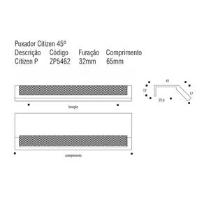 Marca: Zen Design Modelo: Citizen 45° P Acabamento: Dourado Matte Material: Zamac Largura: 65mm Profundidade: 41mm Furação: 32mm Garantia: 12 meses