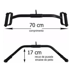 Puxador D Curvo + Costa Curvo + Reto 03 unidades: 01 puxador costa curvo 1 m , 01 puxador reto com giro 50 cm, 01 puxador d curvo 70 cm Puxadores costa 1 m e reto 50 cm feitos em aço com pega emborrachada e soldas reforçadas, puxador d curvo 70 cm feito em aço com pega em pvc e soldas reforçadas. Todos com giro central e ótimo acabamento, feitos em alta qualidade para serem usadas nos mais diversos aparelhos de sua academia, vai tornar seu treino mais completo, produto nacional e com . Especificações técnicas puxador costa curvo - material: tubo oco de aço 1020 - parede do aço: 2 mm - material argola: aço trefilado 1020 com 6,5 mm de espessura - material da pega: manopla emborracha de 1 1/4 32mm - todo soldado em mig soldas reforçadas - pintura eletrostática texturizada e anti-ferrugem - comprimento total do puxador: 1 m - peso do produto unidade : 1,600 kg - cor: preto Especificações técnicas puxadores reto - material: tubo oco de aço 1020 - parede do aço: 2 mm - material argola: aço trefilado 1020 com 6,5 mm de espessura - material da pega: manopla emborracha de 1 1/4 32mm - todo soldado em mig soldas reforçadas - pintura eletrostática texturizada e anti-ferrugem - comprimento total do puxador: 50 cm - peso do produto unidade : 1 kg - cor: preto Especificações técnicas puxador d curvo - material: tubo oco de aço 1020 - parede do aço: 2 mm - material argola: aço trefilado 1020 com 6,5 mm de espessura - material da pega: aço maciço de 1 x 1/4 de espessura e manopla com giro total em pvc com pega de 1 1/4 32mm - todo soldado em mig soldas reforçadas - pintura eletrostática texturizada e anti-ferrugem - comprimento total do puxador: 70 cm - peso do produto unidade : 2 kg - cor: preto Importante - podemos montar kits com a quantidade e itens que forem necessárias para sua academia - nossos puxadores são profissionais, testados e aprovados, ótimo custo benefício