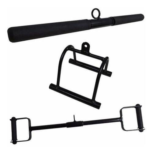Puxador D Reto 70 cm + Triângulo + Reto ----- KIT PUXADORES 3 PEÇAS PROFISSIONAL ------ 03 UNIDADES: 01 Puxador D Reto 70 cm , 01 Puxador Reto Com Giro 50 cm, 01 Puxador Triangulo Puxador D Curvo feito em aço com pega em PVC e com giro central, Puxador Reto Com Giro feito em aço com pega emborrachada e giro central , Puxador Triangulo feito em aço, todos com soldas reforçadas e ótimo acabamento, vai tornar seu treino mais completo, produto de , nacional e com . Especificações Técnicas Puxador D Reto - Material: Tubo Oco de Aço 1020 - Parede do aço: 2 mm - Material Argola: Aço trefilado 1020 com 6,5 mm de espessura - Material da Pega: Aço Maciço de 1 x 1/4 de espessura e Manopla com Giro Total em PVC com pega de 1 1/4 32mm - Todo soldado em MIG soldas reforçadas - Pintura Eletrostática texturizada e anti-ferrugem - Comprimento total do puxador: 70 cm - Peso do produto unidade : 2 Kg - Cor: Preto Especificações Técnicas Puxador Reto Com Giro - Material: Tubo Oco de Aço 1020 - Parede do aço: 2 mm - Material Argola: Aço trefilado 1020 com 6,5 mm de espessura - Material da Pega: Manopla emborracha de 1 1/4 32mm - Todo soldado em MIG soldas reforçadas - Pintura Eletrostática texturizada e anti-ferrugem - Comprimento total do puxador: 50 cm - Peso do produto unidade : 1 Kg - Cor: Preto Especificações Técnicas Puxador Triangulo - Material: Tubo Oco de Aço 1020 1 - Parede do aço: 2 mm - Material dos Arcos: Tubo Oco de Aço 1020 1/2 12,7 mm espessura - Material Argola: Aço trefilado 1020 com 6,5 mm de espessura - Todo soldado em MIG soldas reforçadas - Pintura Eletrostática texturizada e anti-ferrugem - Comprimento total do puxador: 17 x 14 cm Altura x Largura - Peso do produto unidade : 1 Kg - Cor: Preto IMPORTANTE - Podemos montar kits com a quantidade e itens que forem necessárias para sua Academia - Nossos Puxadores são Profissionais, testados e aprovados, ótimo custo benefício