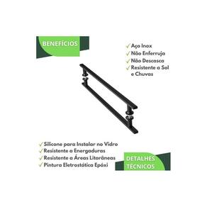 O puxador possui acabamento Pintura Eletrostática Epóxi, o que garante maior proteção contra ferrugem e outros problemas, além de aumentar a resistência contra fatores externos, como exposição ao sol e chuva.