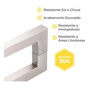 Puxador é um acessório indispensável para facilitar a abertura da porta, alem de dar um toque especial na decoração com um visual moderno. Super resistente podendo ser utilizado em regiões litorâneas, ficar exposto a sol e chuva que não haverá problemas de manchar ou enferrujar, devido ao seu material de aço inox com um lindo acabamento escovado. Pode ser em Portas Pivotantes de Madeira, Portas Comuns de Madeira, Portas de Vidro Temperado, Esquadrias de Alumínio, Esquadrias de Aço e Portões em Aço e Alumínio. Descrição do produto: Item: Puxador de Portas 2 peças, Dentro e Fora . Material: Aço Inox 304 Cor: Prata Acabamento: Escovado Formato: Retangular Comprimento: 100cm Espessura: 2cm Demais medidas, conferir última imagem da sessão de fotos. Marca: Não Informado