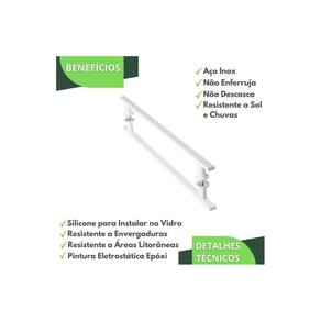O puxador possui acabamento Pintura Eletrostática Epóxi, o que garante maior proteção contra ferrugem e outros problemas, além de aumentar a resistência contra fatores externos, como exposição ao sol e chuva.