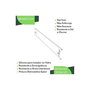 O puxador possui acabamento Pintura Eletrostática Epóxi, o que garante maior proteção contra ferrugem e outros problemas, além de aumentar a resistência contra fatores externos, como exposição ao sol e chuva.