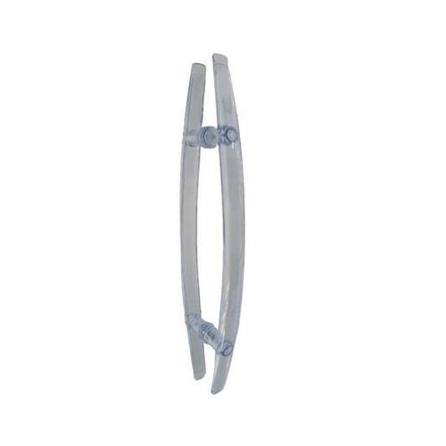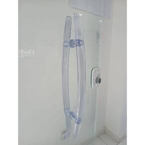 Especificações Técnicas Marca: R. Sabatini Modelo: H Curvo 5030 Cor: Incolor Material: Resina Sintética e Aditivos UV Auto adesivo: Não Espessura do vidro: Portas de Vidro de 8 à 12 mm Uso indicado: Para abertura de portas pivotantes e de deslizar Quantidade: 01 Par lado interno e externo Medidas do puxador: 500 mm x 300 mm 50 cm entre furos 30 cm