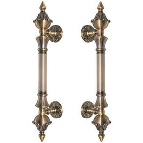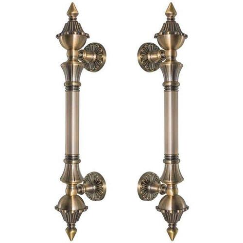 Características técnicas: - Comprimento: 335mm - Largura: 48mm - Profundidade: 70mm - Distância entre furos: 190mm - Peso par : 0,97kg - Material: zinco - Cor: bronze antigo - Acompanha: peças para instalação - Quantidade: par de puxadores para os 2 lados da porta puxador duplo - Marca: Máxima Metais