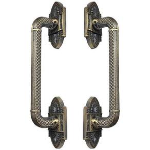 Características Técnicas: - Comprimento: 350 mm - Largura: 60 mm - Profundidade: 70 mm - Distância entre furos: 228 mm - Peso par : 2,26 kg - Material: zinco - Cor: bronze antigo - Acompanha: peças para instalação - Quantidade: par de puxadores para os 2 lados da porta puxador duplo - Código: m119-bra - Marca: máxima metais
