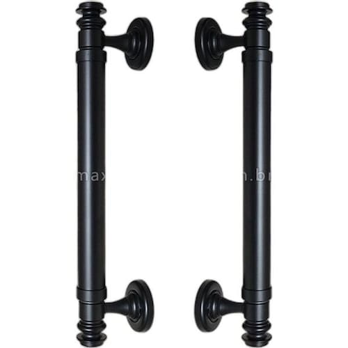 Puxador duplo porta pivotante correr rústico davinci 300mm preto fosco Puxador duplo rústico colonial porta pivotante ou de correr davinci 300mm preto fosco