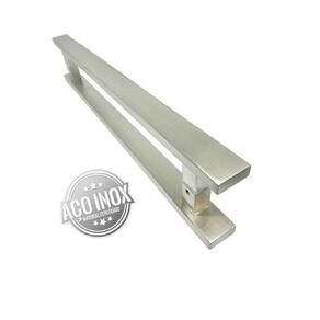 Puxador Inox Duplo Para Porta Barra Chata Escovado 80 Cm