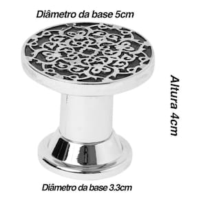 Medida do puxador - Altura medida entre a base superior e inferior 4Cm x Diâmetro da base superior 5Cm X Diâmetro da base inferior 3.3Cm.