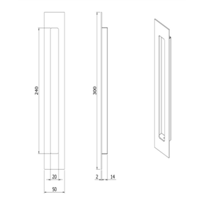 Puxador Para Porta De Embutir Concha Quadrado Pado 30Cm