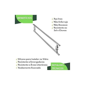 O puxador possui acabamento escovado, o que garante maior proteção contra ferrugem e outros problemas, além de aumentar a resistência contra fatores externos, como exposição ao sol e chuva.
