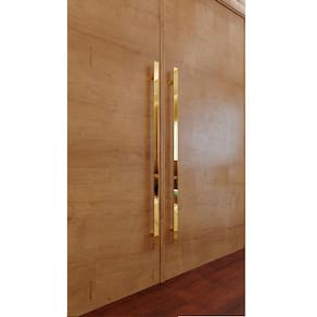 Puxador para porta dourado gold duplo inox pivotante correr italy line df926 60 cm 600 mm barra chata O puxador dulpo df926 da italy line perfeito para portas de madeira, vidro, alumínio e portões. Produto de excelente qualidade e de alta resistência.Marca: italy line.Modelo: df 926.Distancia entre furos: 60cm entre furos dupla fixação.Material: aço inox.Acabamento: gold