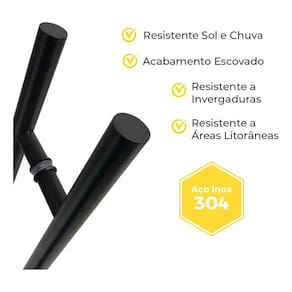 o puxador para porta 40cm preto inox 304 pivotante redondo é perfeito para suas portas pivotantes de madeira, portas comuns de madeira, portas de vidro temperado, esquadrias de alumínio, esquadrias de aço e portões em aço e alumínio. Com instalação em área externa, esse puxador é fabricado em aço inox 304, garantindo durabilidade e resistência. Com acabamento preto escovado, esse puxador possui perfil tubular no formato h, proporcionando um design moderno e elegante. Com tamanho de 40cm e entre furos de 28cm, esse puxador é ideal para portas e portões. Além disso, o puxador é em 2 lados par , possibilitando a abertura da porta tanto pelo lado de dentro quanto pelo lado de fora. O puxador para porta 40cm preto inox 304 pivotante redondo acompanha parafusos para facilitar a instalação. Esse produto também está disponível em outras medidas, consulte-nos para mais informações. Recomendamos que você não utilize produtos abrasivos ou corrosivos na limpeza do puxador, garantindo assim sua durabilidade. Além disso, indicamos que você aguarde o produto chegar para furar a porta, assegurando a instalação correta. Adquira agora mesmo o puxador para porta 40cm preto inox 304 pivotante redondo e aproveite sua alta qualidade, resistência e design moderno para valorizar suas portas e portões.