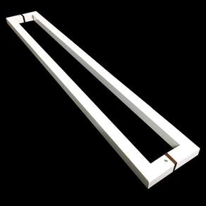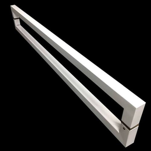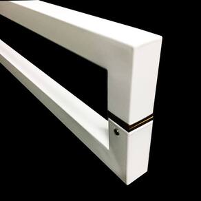 Puxador para portas fabricado em aço inox branco brilhante, resistente a água e luz solar.