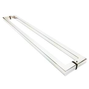 Puxador para portas fabricado em aço inox polido brilhante, resistente a água e luz solar.