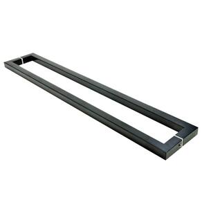 Puxador para portas fabricado em aço inox preto fosco, resistente a água e luz solar.