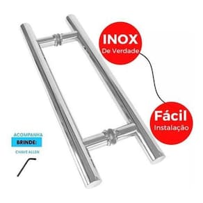 Material: aço inoxidável Acabamento: polido Diâmetro: 25 mm Formato: redondo Tamanho: 30 cm Distância entre furos: 20 cm Fixação: parafusos inclusos Aplicação: portas pivotantes de alumínio ou vidro ou madeira Durabilidade: alta