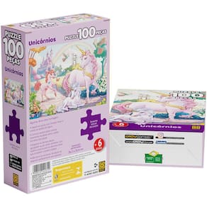 Não deixe de brincar e se divertir com este quebra-cabeça de 100 peças, para você encaixar uma a uma até formar está linda de unicórnios. Mais que um passatempo divertido, os quebra-cabeças desenvolvem o raciocínio, relaxam e se transformam num autêntico hobby