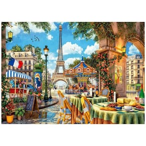 Torre Eiffel, mesas de delícias ao Sol, carrossel convidativo. Explore a magia da Cidade Luz em cada peça!