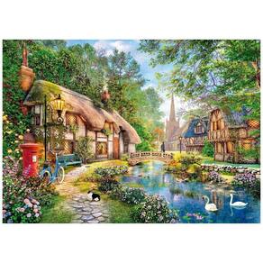 Quebra-cabeça 1000 peças VilarejoEste privilegiado vilarejo parece um sonho. Cercado por exuberante natureza, ali reinam a calma e a serenidade. Tudo parece sair diretamente de um conto de fadas: casas rodeadas por flores, as fresco e perfumado, habitantes amigáveis e acolhedores, tempo passando num ritmo mais lento. Não há pressa ou correria apenas a alegria de viver em harmonia com a natureza.As atividades são simples e prazerosas. Como andar de bicicleta ou simplesmente sentar no banco, que vez ou outra é ocupado por um esquilo, e contemplar as flores e os patinhos no riacho.Um lugar onde a beleza da natureza se mistura com a da alma humana, criando uma harmonia única e indescritívelA partir de 10 anosQuantidade de peças: 1008Dimensões aproximadas: 50 x 70 cmDicas para montagem:1. Confira o número de peças com a informação existente na embalagem.2. Providencie uma base papelão ou madeira um pouco maior que a imagem a ser montada. As dimensões da imagem podem variar em até 1%.3. Separe as peças com cantos retos e monte, sobre a base, toda a borda da imagem a ser montada.4. Separe as demais peças, agrupando-as pelas cores, para facilitar a sua localização.5. Quando chegar a uma área com muitas peças da mesma cor, separe-as pelo formato. 6. Mantenha o quebra cabeça em lugar plano, enquanto estiver fazendo a montagem.7. Depois de montar, certifique-se de que todas as peças estão bem encaixadas, e nos lugares corretos. Homologação Inmetro: CE-BRI/IQB 006352 52216/18-025 Marca: Não Informado