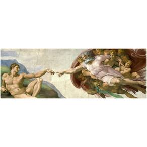 A cena retratada é tirada do Gênesis, o primeiro livro da Bíblia, e mostra o momento em que Deus cria o primeiro homem, Adão.
