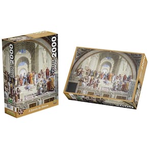 A obra A Escola de Atenas é uma famosa pintura criada por Rafael, no início do século XVI.A cena retratada mostra uma sala de aula com vários filósofos discutindo e debatendo. Entre eles, podemos ver Platão, Sócrates, Aristóteles e muitos outros.Rafael usou uma técnica de pintura conhecida como sfumato, que consiste em suavizar as bordas das figuras e criar uma sensação de profundidade na pintura.Além de sua beleza artística, a obra é um importante símbolo cultural e histórico, representando a busca do conhecimento e da verdade, temas fundamentais para a filosofia grega e para a Renascença.Dimensões aproximadas 70,4 x 97,8 cmContém 2000 peças