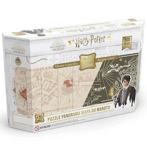 Relembre o universo de Harry Potter nesse incrível quebra-cabeça panorâmico de 500 peças que brilha no escuro O Mapa do Maroto é um mapa mágico de Hogwarts que é capaz de mostrar a localização exata de cada pessoa dentro dos limites do castelo, além de indicar caminhos e passagens secretas. Está pronto para descobrir novos caminhos com este lindo puzzle São 500 peças, para você encaixar uma a uma até formar uma linda imagem. Mais que um passatempo divertido, os quebra-cabeças desenvolvem o raciocínio, relaxam e se transformam num autêntico hobby.