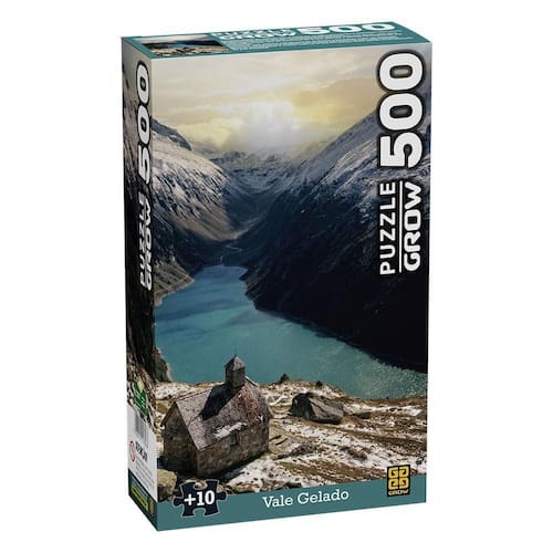 Poucos lugares no mundo têm a sorte de reunir numa mesma paisagem elementos simples e grandiosos que se completam perfeitamente.É isso que vemos na imagem que retrata este enorme vale nos Alpes, com uma construção ímpar, que se acomoda de forma plácida e isolada na magnitude das montanhas. A neve no topo parece aos poucos de deslocar para baixo, como se quisesse encontrar as águas que desfilam lentamente no centro de toda essa natureza.Sinta-se privilegiado e monte cada uma das 500 peças deste gélido local banhado de paz e belezaQuantidade de peças: 500Tamanho da imagem: 49,5 x 36,5 cm aproximadamente Homologação Inmetro: CE-BRI/IQB 006352 52216/18-025 Ean: 7908010143966