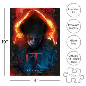 - Quebra-cabeça de 500 peças: canalize um antigo mal cósmico e use seus poderes para montar este quebra-cabeça de 500 peças de Pennywise, o palhaço dançante, do emblemático filme de terror, IT. O quebra-cabeça completo mede 35,5 x 48,2 cm.