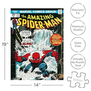 - Desbloqueie seu super-herói interno... Entre no universo Marvel com o simpático Homem-Aranha e enfrente o desafio de unir este quebra-cabeça de 500 peças com arte da lenda da Marvel John Romita Sr. O quebra-cabeça completo mede 35 x 48 cm
