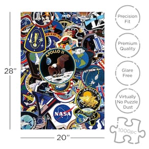 - QUEBRA-CABEÇA DE 1000 PEÇAS: Monte este impressionante quebra-cabeça de 1000 peças de patches de missões da NASA, projetado por suas tripulações de astronautas para comemorar cada voo espacial. É de outro mundo! O quebra-cabeça completo mede 20 x 28 polegadas