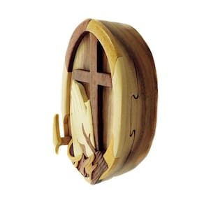 Este é o presente mais exclusivo e acessível encontrado na internet! Caixa de quebra-cabeça esculpida em madeira dura reciclada. Fizemos todas as nossas caixas de quebra-cabeça com um ímã para que o pino não caia. Nossas caixas de quebra-cabeça são grandes o suficiente por dentro para conter um vale-presente.