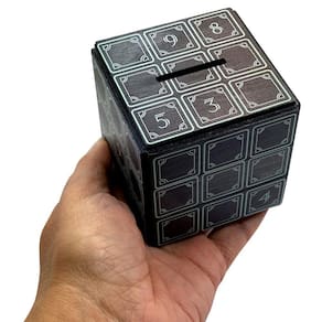 Esta é uma ótima caixa de quebra-cabeça, linda, projetada para usar, dar ou guardar dinheiro, e pequenas joias para guardar em segurança. Esta grande caixa de quebra-cabeça secreta é um presente muito popular que faz com que o destinatário desbloqueie a surpresa interior. Feito todo em madeira. Você pode resolver esse quebra-cabeça secreto? Sua missão, se você aceitar, é abrir a “Caixa Secreta de Quebra-Cabeças”. Você tem que decidir o que armazenar aqui, a decisão é sua. A caixa tem um compartimento de cofrinho para inserir/soltar moedas ou notas na caixa. O tamanho do compartimento interno é: 2,25 “L x 1,5" W x 1,75" H
