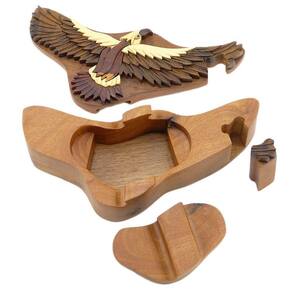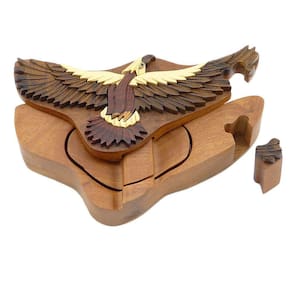 Esta caixa de quebra-cabeça secreta é uma criação lindamente feita à mão, com acabamento de alta qualidade, feita de madeira l. A caixa é um quebra-cabeça que se divide em quatro peças e descobre um espaço secreto para guardar tesouros especiais. Tudo o que você precisa fazer para abrir a caixa é pegar a chave da barra e deslizar as peças na ordem correta e o espaço secreto será revelado. Sem dúvida, esta caixa de quebra-cabeça secreta é um ótimo presente para aquela pessoa especial.