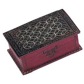 - Esta caixa de truques tem um padrão celta intrincadamente esculpido e embutido na tampa. Na primeira tentativa, esta caixa parece não abrir, mas se você conhece o truque... deslize o painel frontal para a direita e levante a tampa!