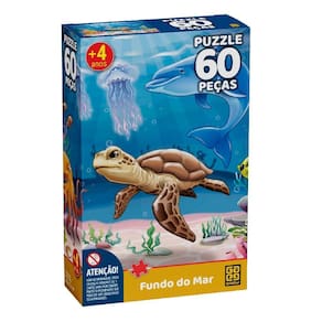 Puzzle Fundo do Mar 60 Peças - Grow Não deixe de brincar e se divertir com este quebra-cabeça! São 60 peças, para você encaixar uma a uma até formar uma linda imagem. Mais que um passatempo divertido, os quebra-cabeças desenvolvem o raciocínio, relaxam e se transformam num autêntico hobby. Selo Inmetro: CE-BRI/ICEPEX-N 01264-25