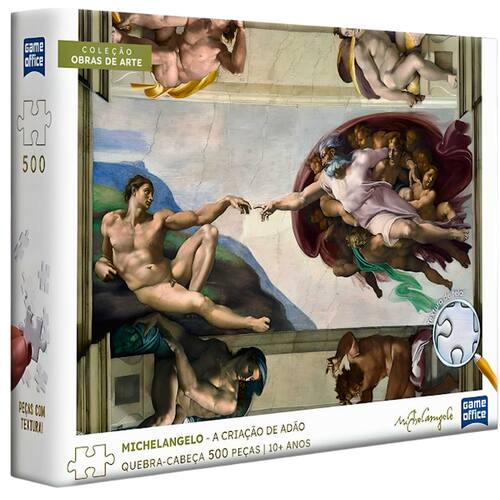 Descrição do produto : O Michelangelo – A Criação de Adão – Quebra-Cabeça 500 Peças é uma verdadeira obra de arte em forma de quebra-cabeça, perfeito para os amantes de arte clássica e desafios de montagem. Este quebra-cabeça apresenta uma reprodução detalhada de uma das pinturas mais famosas do mundo, "A Criação de Adão", do renomado artista Michelangelo, localizada no teto da Capela Sistina, no Vaticano. Com 500 peças de alta qualidade, ele permite que você se aproxime de uma das maiores obras do Renascimento de uma maneira interativa e envolvente. : Detalhes técnicos : Código : 3234 Fornecedor : Toyster Código de Barras : 7896054032349 Peso (kg) : 0,34 Comprimento Emb. (cm) : 19 Altura Emb. (cm) : 25 Largura Emb. (cm) : 4 Imagem montada (aproximadamente) 47,8 x 34,8 cm :
