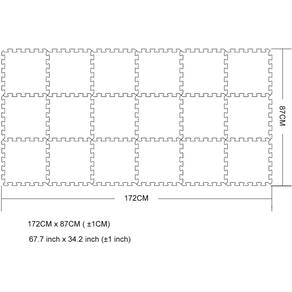 Tamanho de uma peça: 30 x 30 x 1,0 cm (considere uma diferença de 0,1 a 1 cm). 18 peças por conjunto. Material: Feito de EVA ecológico não tóxico e sem odor. Estação adequada: primavera, verão, outono, inverno - ? Área de cobertura do tapete de brincar -- 172 cm x 87 cm (± 1 cm) / (172.0 cm* 86.9 cm (± 1 polegada)) - ? Tapete de espuma seguro -- livre de BPA, livre de ftalatos, sem grafite. Os tapetes YIMINYUER Play são feitos de espuma macia e segura e durável. Não é tóxico e atende aos padrões de segurança regulamentados pelos EUA e Europa. - ? Tapete grosso e macio -- A espessura é de 1 cm (0,4 polegadas), forte flexibilidade e durabilidade. Perfeito para proteção do chão, exercícios, ioga, sala de jogos. - ? Pode quebra-cabeças com os tapetes de padrão com tamanho 30 cm * 30 cm * 1 cm em nossa loja. - ? Observação: nossos produtos não podem se encaixar nos tapetes de outras lojas.