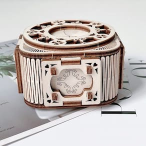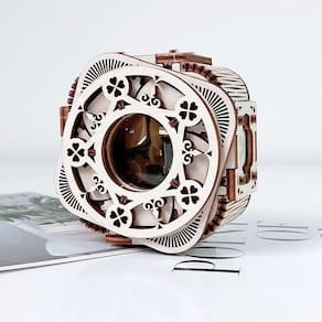 Material: madeira Tamanho: 8,5 x 8,5 x 6 cm Design elegante de caixa de joias — apresenta uma tampa circular finamente trabalhada e padrões de recorte de inspiração floral, funcionando como caixa de música e recipiente de armazenamento para pequenas bugigangas ou anéis. Blue Danube Melody — Toca a música clássica atemporal “Blue Danube” quando está pronta, criando um ambiente sereno e nostálgico em seu quarto ou espaço de trabalho. Montagem de quebra-cabeças — Inclui peças de madeira pré-cortadas para uma experiência prática de bricolage, promovendo a criatividade e o foco de adolescentes e adultos durante a montagem. Movimento mecânico suave — Construída com um mecanismo de enrolamento de precisão, a caixa de música funciona sem problemas sem baterias, enfatizando o artesanato tradicional. Compacta e decorativa — Com suas dimensões de 8,5 x 8,5 x 6 cm, esta caixa é perfeita para decoração de mesa, estilo de estante de livros ou como uma charmosa adição colecionável a qualquer ambiente com tema vintage.