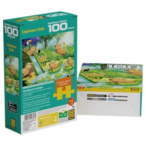Mergulhe em uma cena mágica e cheia de alegria com este quebra-cabeça de 100 peças! A imagem encantadora mostra um grupo de capivaras se divertindo em um parque natural, rodeadas por tobogãs de bambu, folhas flutuantes e amigos coloridos como tucanos e araras.Com cores vibrantes e detalhes fofos, este quebra-cabeça estimula a imaginação e desenvolve o raciocínio lógico de forma divertida. Ideal para crianças e adultos que amam natureza, animais e momentos de descontração em família!Tamanho da imagem : 36,3 x 26,4 cm Idade recomendada: a partir de 6 anosMonte peça por peça e descubra a beleza dessa floresta encantada!