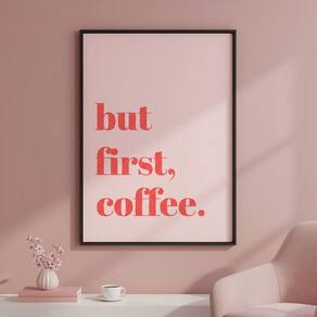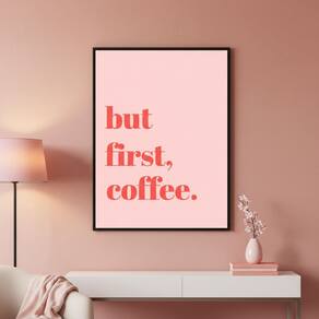 Quadr But First Coffee Minimalista Rosa 70x50cm Mold Branca