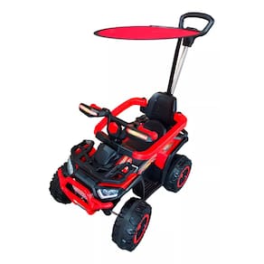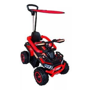O Quadriciclo IMPORTWAY com empurrador e cobertura na cor vermelha é ideal para passeios ao ar livre. Seguro e confortável, conta com assento ergonômico, volante interativo e empurrador ajustável para os pais. A cobertura removível protege do sol, garantindo diversão e proteção ao mesmo tempo.