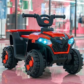 * Material : Plástico e aço carbono * Velocidade : 5km/h * Farol de LED dianteiro e traseiro * Música no painel * Não contem controle remoto ( a própria criança controla o brinquedo ) * Botão liga/desliga. * Velocidade : 5km/h * Carregamento: De 8 à 12 horas * Capacidade: 1 Criança * Pedal para que a criança possa acelerar
