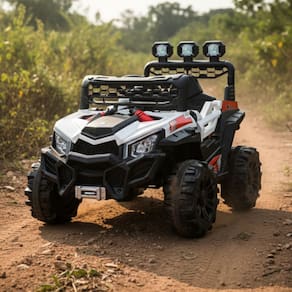 Controle pelos Pais: Sob o comando de um controle remoto 2.4G, aliado a conexão Bluetooth, os pais podem controlar o veículo, (indicado para crianças menores que ainda não possuem controle de direção)