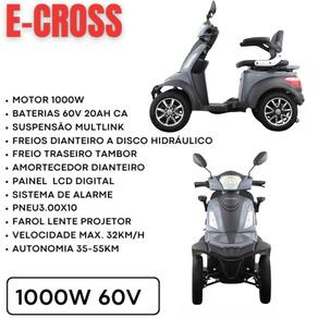 Quadriciclo Elétrico Scooter E-Cross 1000W 60V Alarme Bagageiro Cinza Duos